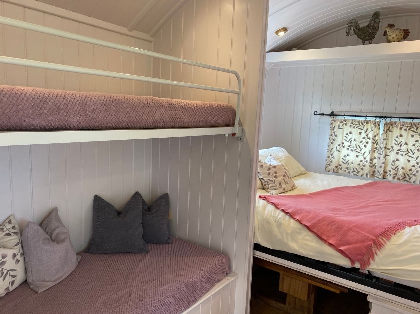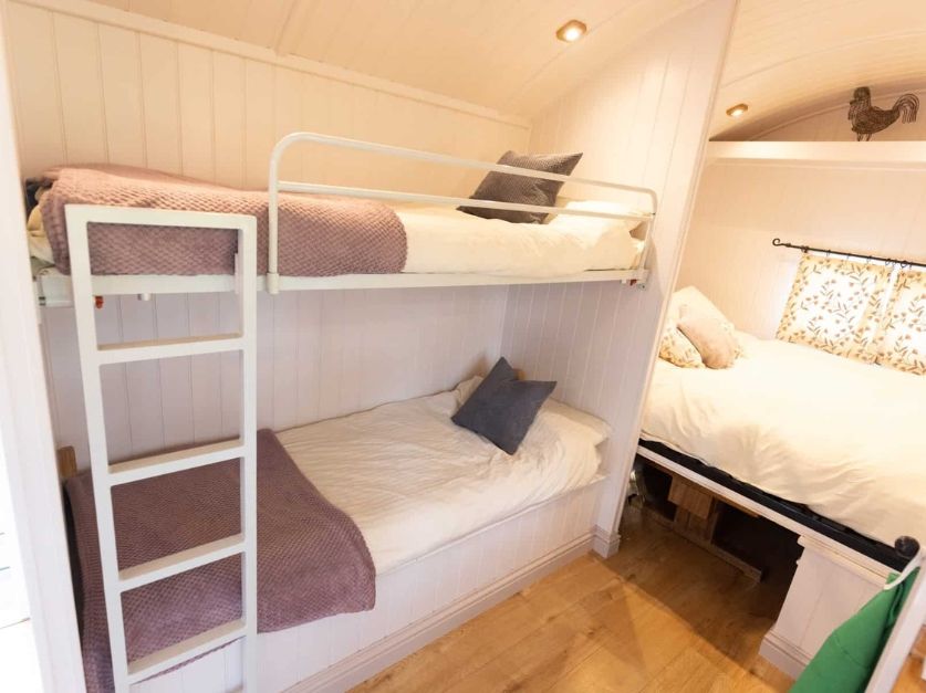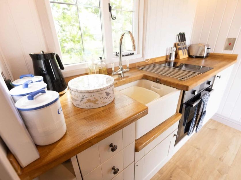 Or maybe you’re leaning more towards a cosy, well-equipped shepherd hut. Fully insulated and heated, each of our huts has a bespoke kitchen area and a well-designed shower/toilet area. (No running across fields in the night!)