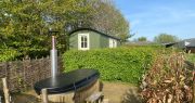 We’re delighted to announce that a luxury Scandinavian wood-fired hot tub is available to hire with the Norfolk Horn shepherd hut.
