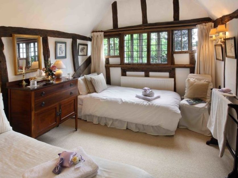This lovely 15th century cottage is steeped in character with exposed beams in every room, inglenook fireplaces, lead-light windows, bread oven and old brick floors. The cottage garden is typically English, warm, secluded and quiet.