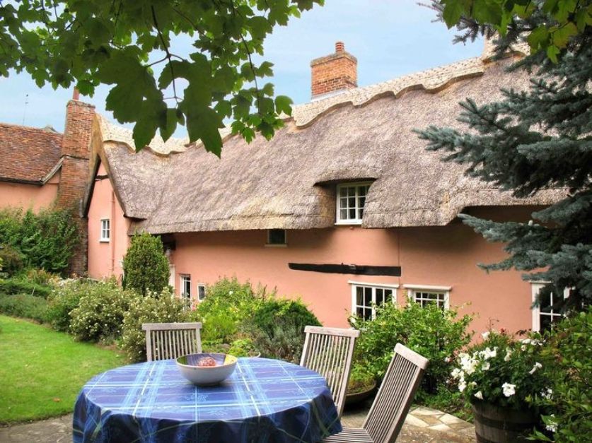Idyllic ‘chocolate box’ thatched cottage in the picturesque medieval village of Kersey with its ancient ford and traditional pub. 5 Star Gold Award and Suffolk best self catering establishment. Perfect for families or friends.